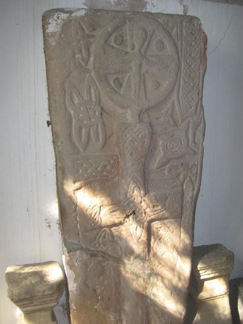 In the large church at Meifod nearby in Powys is an impressive grave slab with two crosses, one eastern and one western one above the other. Decorated with Welsh and Viking motifs and dated to 9C the stone may have once covered the coffin of a prince of Powys. The church is said to have been founded in the 6C by St Gyddfarch. It was here that St Tysilio gave himself to the monastic life. The monastery became a large one.