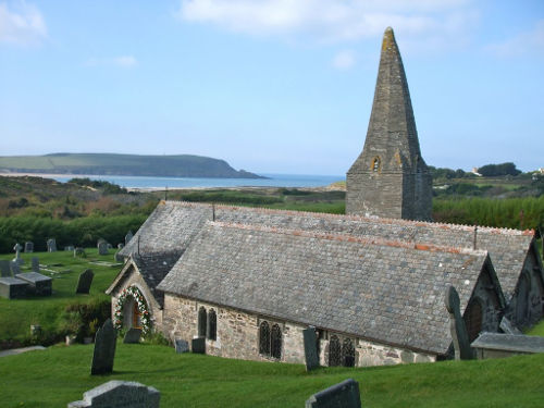 This saint lived in a cave in the sand dunes near Rock on the eastern side of the Camel estuary. He evangelised the area and the Jesus Well near the church was used for baptisms. The church is now called St Enedoc. At one time it nearly disappeared in the encroaching sands.