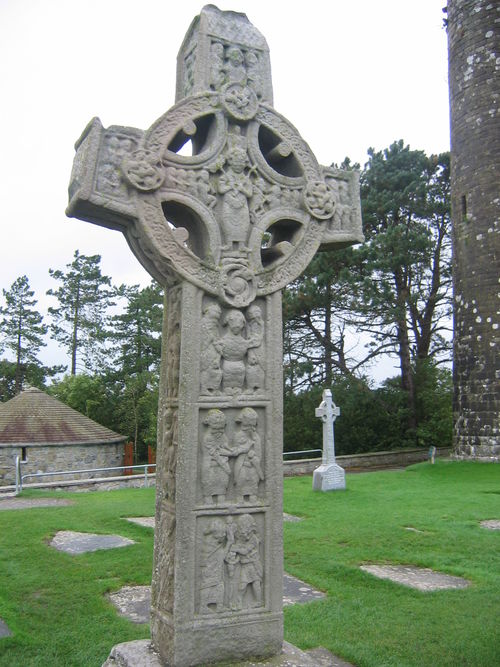 St Ciaran (Kieran) was a disciple of St Finnian of Clonard, St Enda and St Senan who founded the great monastery of Clonmacnoise in Co Offaly with ten companions. The site was almost the very centre of island with the east west roadway and the north south waterway of the Shannon. He died after one year as the result of the yellow plague. He us regarded as one of the twelve apostles of Ireland.