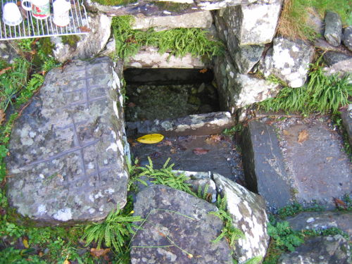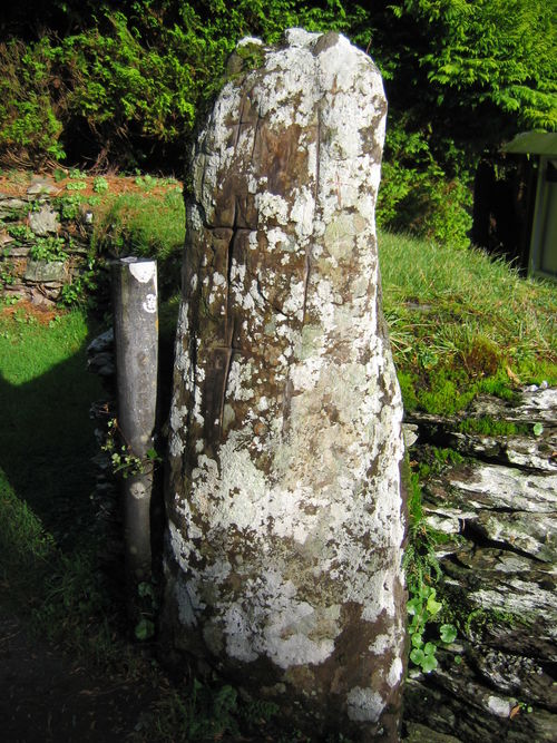 St Gobnet is an extremely popular saint in Co Cork. Her circular hut often referred to as her ‘house’ or ’kitchen can be seen in the village; her grave is nearby and her holy well. A cross slab has a remarkable figure of a pilgrim on it.