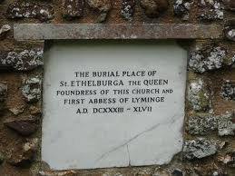 St Ethelburga was sent to be husband of King Edwin and Queen of Northumbria. A condition of the marriage was that he should become a Christian. When he was killed in battle she was forced to return south and established a monastery for women at Lyminge; research has shown there was also one for men.