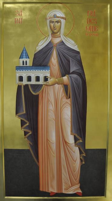 St Frideswide was the daughter of a Mercian sub-king said to be resposible for founding a double monastery at Christ Church in Oxford. She helped nuns in Binsey by praying for a well; now called St Margaret’s well, it can still be seen in the village a few miles upriver.